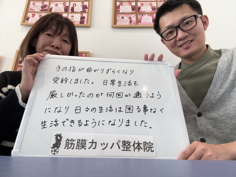 「ばね指の症状がなくなりました!手術かなと考えていたので嬉しいです!」